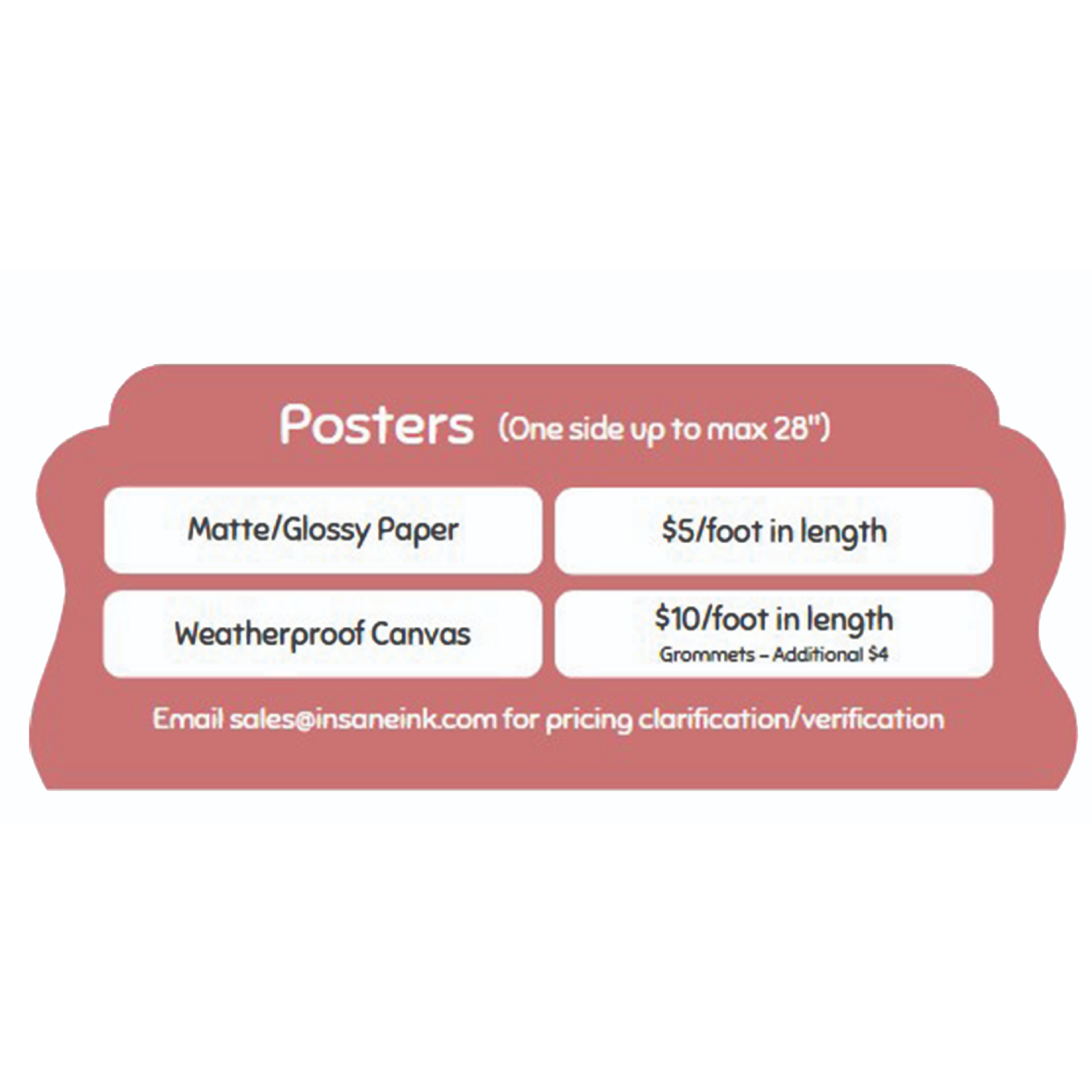 Once a form is submitted, an Insane Ink representative will be in contact to verify pricing before project is started.