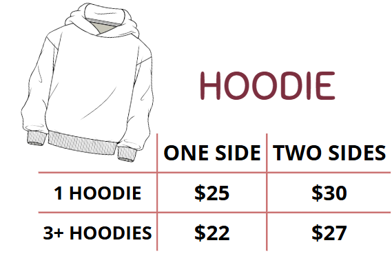 Garments available in Ash Grey, Sports Grey, and White. Hoodies ONLY in black.